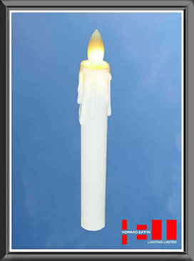 Candle tubes with realistic “wax” drips are made from translucent PVC, allowing the glow lamp to light through the wax like a real candle. Candles are available in 19mm, 24mm, 35mm and 40mm diameters. The candle modules are also available as a non-flickering version, but still giving the authenticity of a real candle.
